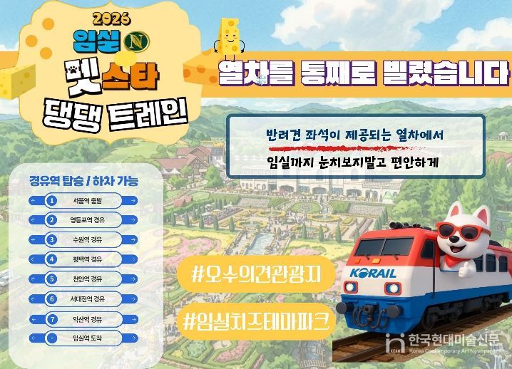 한국현대미술신문 기자 | 임실군이 오는 5월 1일부터 3일까지 3일간 개최되는 ‘2026 임실N펫스타’를 앞두고, 반려견과 함께 떠나는 특별 전용 열차 상품인 ‘임실N펫스타 댕댕트레인’을 운영한다고 밝혔다.