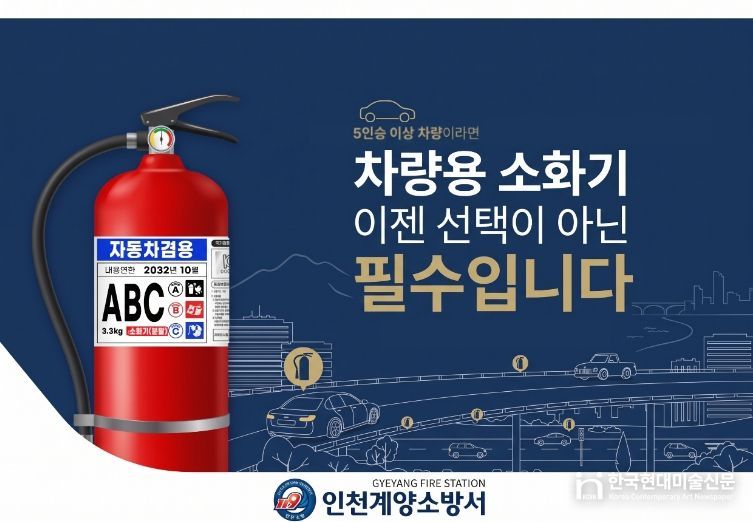 한국현대미술신문 박재남 기자 | 계양소방서(서장 송태철)는 완연한 봄을 맞아 주말 나들이 등 장거리 차량 이동이 증가함에 따라, 차량 화재 사고에 대비해 '차량용 소화기' 비치 및 상태 점검을 당부한다고 17일 밝혔다.