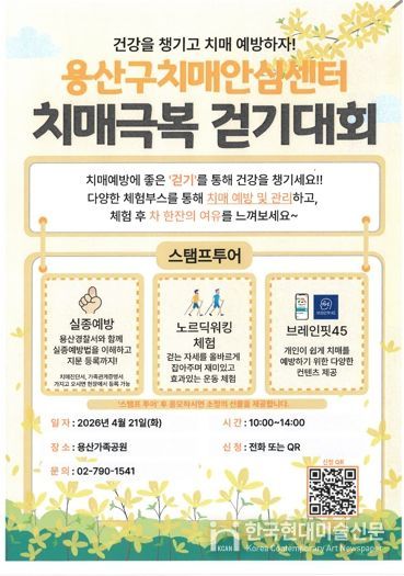 한국현대미술신문 배건 기자 | 서울 용산구가 오는 21일 용산가족공원에서 지역주민과 치매환자 및 가족이 함께 참여하는 ‘치매극복 걷기대회’를 개최한다.