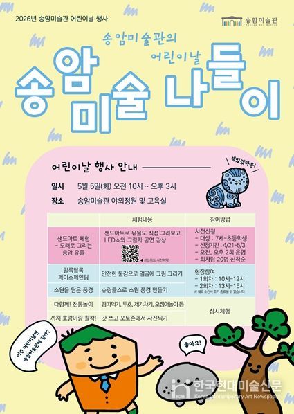 한국현대미술신문 박재남 기자 | 인천광역시 송암미술관은 5월 5일 어린이날을 맞아 체험행사 '송암 미술 나들이'를 개최한다고 밝혔다.