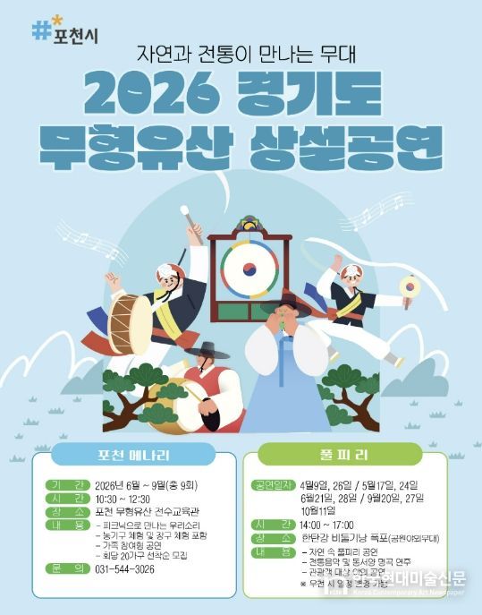 한국현대미술신문 배윤섭 기자 | 포천시는 지난 19일, 한탄강 비둘기낭폭포 야외무대에서 ‘풀피리’ 공연을 시작으로 ‘2026년 포천 무형유산 상설공연’의 대장정에 돌입했다.