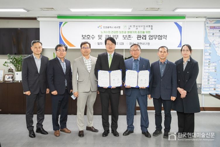 한국현대미술신문 박재남 기자 | 인천 서구는 지난 17일 관내 노거수의 건강한 보존과 생태가치 증진을 위해 인천시 최초로 ‘보호수 및 큰나무 보존·관리’ 업무협약을 체결했다고 밝혔다.