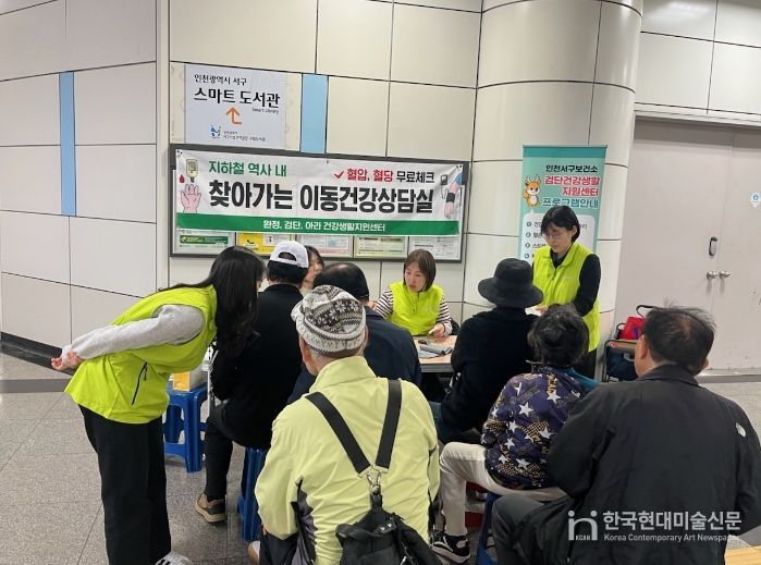 한국현대미술신문 박재남 기자 | 인천 서구 검단권역(완정ˑ검단ˑ아라) 건강생활지원센터는 지난 17일 인천지하철 2호선 검단사거리역에서 지역 주민을 대상으로 찾아가는 이동건강삼담실은 운영했다고 밝혔다.