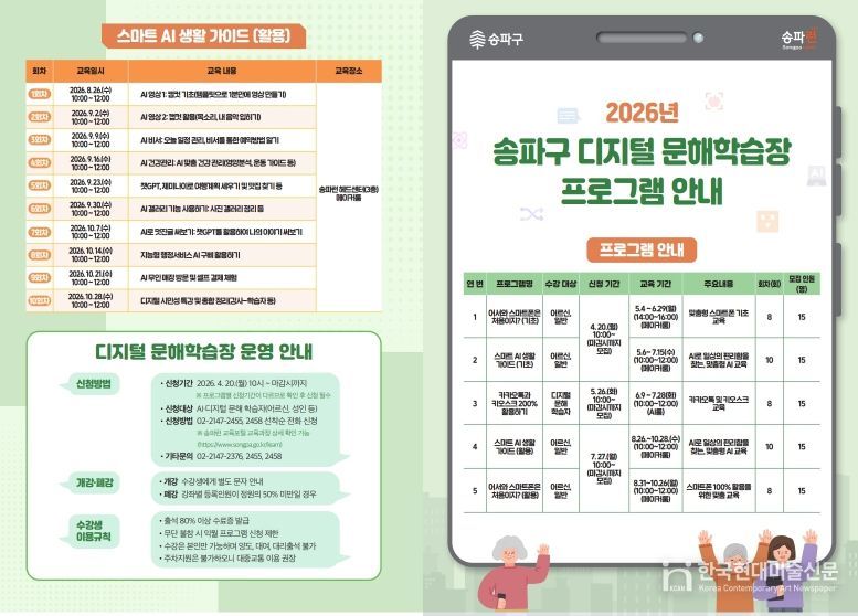 한국현대미술신문 배건 기자 | 서울 송파구는 스마트폰과 AI 사용이 익숙하지 않은 주민을 위해 5월부터 ‘디지털 문해학습장’ 교육을 운영한다.