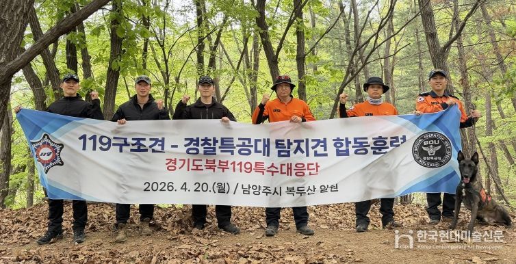 한국현대미술신문 배윤섭 기자 | 경기도북부119특수대응단은 20일 남양주시 복두산 구조견센터 훈련장에서 119구조견과 경찰특공대 탐지견이 참여하는 합동훈련을 실시했다.