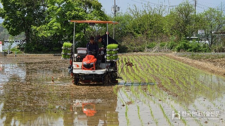 한국현대미술신문 정소영 기자 | 달성군은 20일 하빈면 일원에서 올해 첫 모내기를 실시하며 본격적인 벼농사의 시작을 알렸다. 한 해 농사의 출발점인 이날 모내기는 풍년을 기원하는 농업인들의 활기찬 기대 속에서 진행됐다.