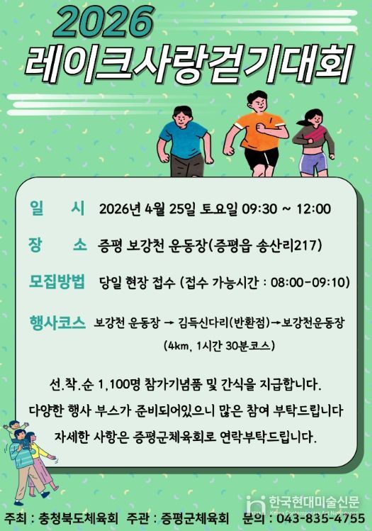 한국현대미술신문 신정은 기자 | ‘2026 증평군 레이크사랑 걷기대회’가 오는 25일 보강천 일대에서 열린다.