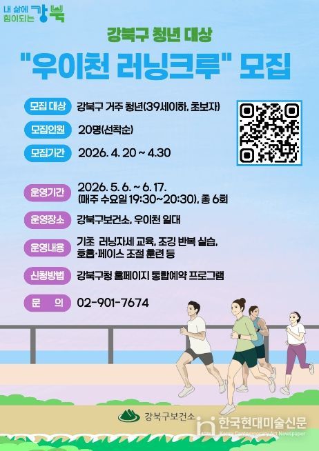 한국현대미술신문 배건 기자 | 서울 강북구가 청년층의 건강 증진과 생활 속 운동 습관 형성을 위해 ‘청년 러닝크루’ 참여자를 모집한다.