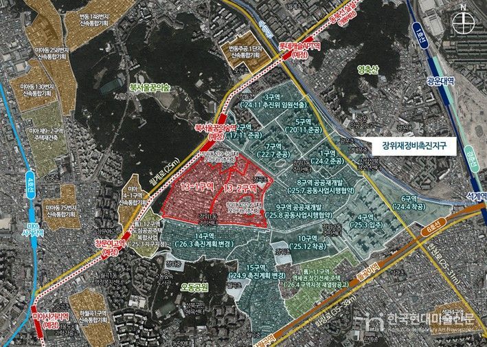 한국현대미술신문 배건 기자 | 서울시가 장위 재정비촉진지구의 마지막 남은 재개발 지역인 ‘장위동 219-90 일대(13-1구역), 장위동 224-12 일대(13-2구역)’의 신속통합기획을 확정(5,900세대 내외 규모, 13-1구역 : 3,400세대, 13-2구역 : 2,500세대)했다. 이로써, 장위 재정비촉진지구 전체의 재정비촉진계획 수립이 완료되어, 장위동 일대가 하나의 생활권으로 연결된 도시 구조로 재편돼 주민의 생활 여건이 한층 개선될 것으로 기대된다.