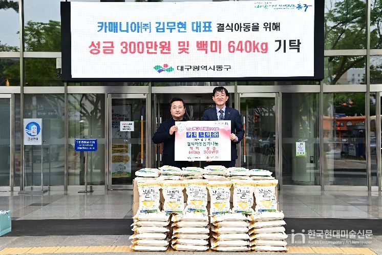 한국현대미술신문 정소영 기자 | 카매니아(주)(대표 김무현)는 22일, 관내 저소득 결식아동을 위해 성금 300만원과 백미 460kg(250만원 상당)을 기탁했다.