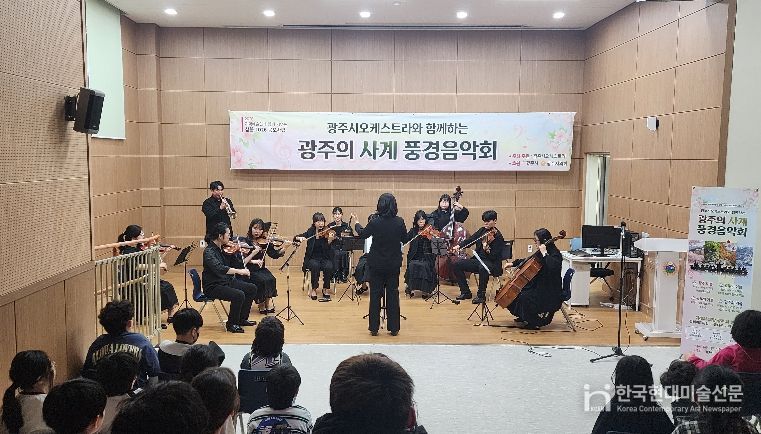 한국현대미술신문 배윤섭 기자 | 광주 고산별빛초등학교는 4월 21일 4학년 학생들을 대상으로 광주시오케스트라를 초청해 ‘광주의 사계 풍경음악회’를 개최했다.