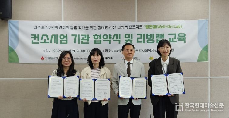 한국현대미술신문 정소영 기자 | 부산 동래구는 사직종합사회복지관(관장 황승호)이 지난 20일 이주배경주민의 사회적 통합 확대를 위한 소셜리빙랩 프로젝트 ‘웰온랩(Well-on Lab)’의 성공적인 추진을 위해 동래구청 및 유관 기관과 업무협약을 체결했다고 밝혔다.
