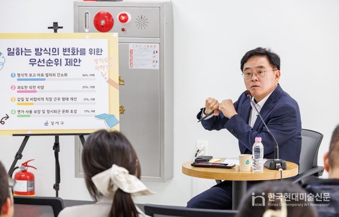 한국현대미술신문 배건 기자 | 진교훈 강서구청장이 22일 수요일 주요 계약‧인허가 등 부패 취약분야 부서 직원들과 청렴 소통 간담회를 가졌다.