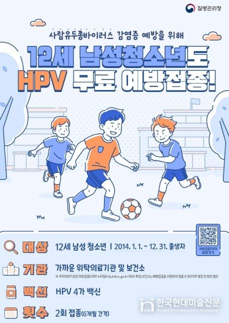 한국현대미술신문 원진 기자 | 원주시보건소는 오는 5월 6일부터 12세 남성 청소년(2014년생)을 대상으로 사람유두종바이러스(HPV) 백신 국가예방접종 지원사업을 시작한다.