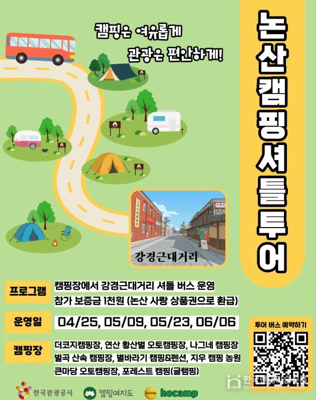한국현대미술신문 신정은 기자 | 논산시는 4월 25일부터 강경근대거리의 관광 매력을 널리 알리고 체류형 관광 활성화를 위해 ‘논산 캠핑 셔틀버스’ 프로그램을 운영한다.