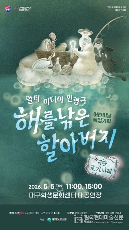 한국현대미술신문 정소영 기자 | 대구학생문화센터는 어린이날을 맞아 어린이와 가족 관객을 위한 특별 기획공연 '멀티미디어 인형극 해를 낚은 할아버지'를 오는 5월 5일 대공연장에서 선보인다.