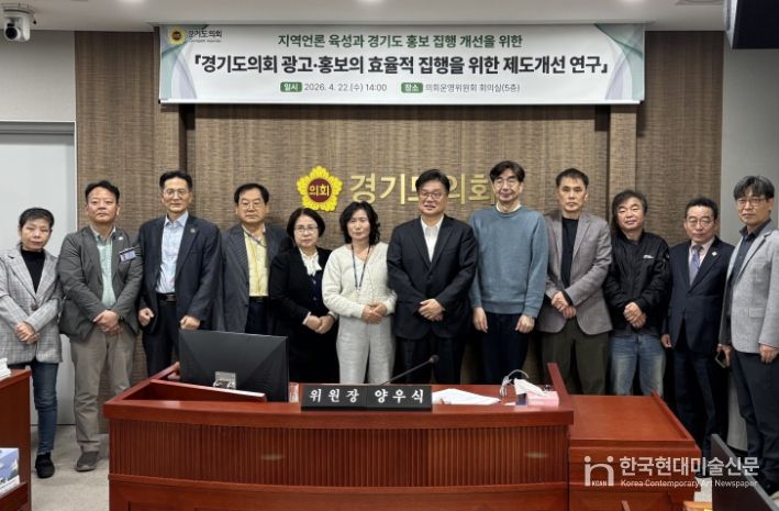 한국현대미술신문 배윤섭 기자 | 경기도의회 의회운영연구회(위원장 양우식)는 지난 22일 의회운영위원회 회의실에서 '경기도의회 광고·홍보의 효율적 집행을 위한 제도개선 연구' 용역 중간보고회를 개최했다.