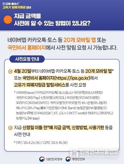 또한 지원금 안내를 사칭한 ‘스미싱’ 등 금융 사기에 대한 각별한 주의가 필요하다. 공식 국민비서 알림 메시지와 정부 및 카드사 등의 고유가 피해지원금 안내문자에는 직접적인 링크(URL)나 QR코드가 포함되지 않는다. 수상한 링크나 앱 설치 유도 메시지를 받으면 즉시 삭제하고, 118 신고센터(한국인터넷진흥원)로 문의해야 한다.