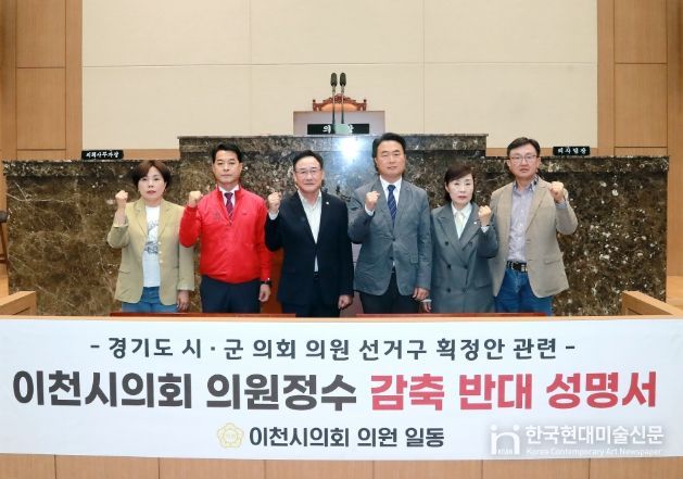 한국현대미술신문 배윤섭 기자 | 이천시의회 의원 일동은 23일 본회의장에서 “경기도 시·군의원 선거구획정안”과 관련해 이천시 의원 정수 감축에 반대하는 공식 입장을 밝혔다. 최근 경기도 시·군의원 선거구획정위원회가 경기도의회에 제출한 초안에는 이천시 의원정수를 기존보다 1명 축소하는 방안이 포함된 것으로 알려졌다.