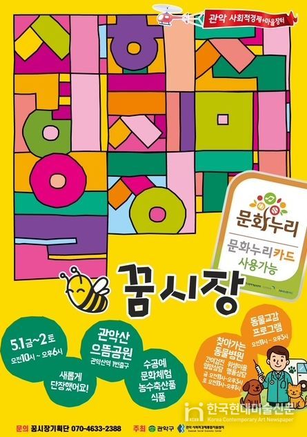 한국현대미술신문 배건 기자 | 관악구가 오는 5월 1일과 2일 양일간 관악산 으뜸공원에서 사회적경제장터 ‘꿈시장’과 ‘찾아가는 동물병원’을 함께 개최해 봄나들이객을 반기는 풍성한 콘텐츠를 선보인다.