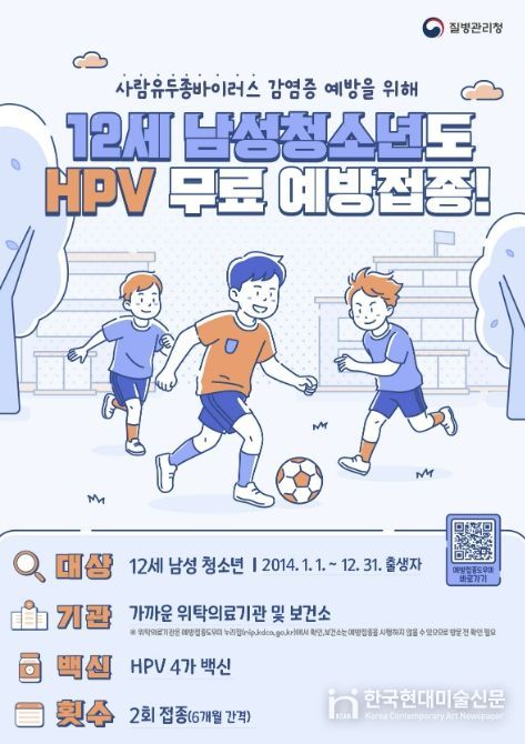 한국현대미술신문 배윤섭 기자 | 안산시는 질병관리청 방침에 따라 내달 6일부터 사람유두종바이러스(HPV) 국가예방접종 지원 대상을 12세 남성 청소년까지 확대한다고 24일 밝혔다.