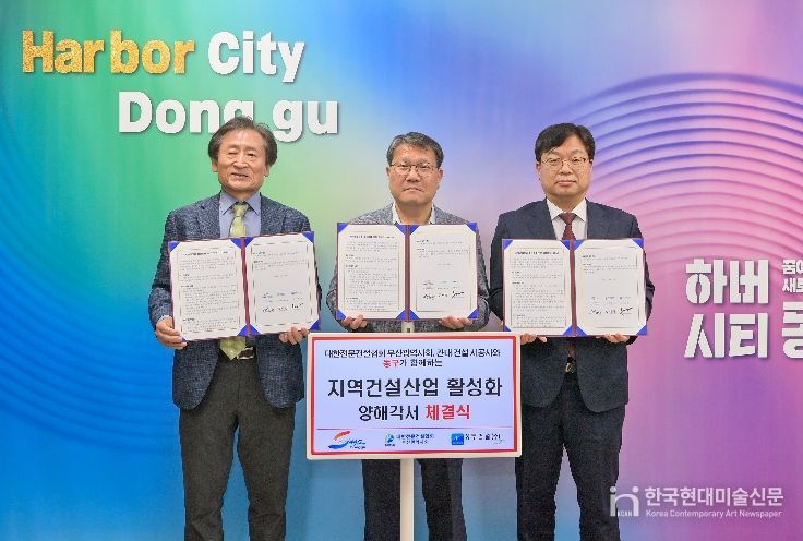 한국현대미술신문 정소영 기자 | 부산 동구는 4월 23일 대한전문건설협회 부산광역시회 및 동구 관내 건축공사장 시공사인 성무건설 주식회사와 '지역 건설업체 활성화 및 상생 발전을 위한 업무협약(MOU)'을 체결했다.