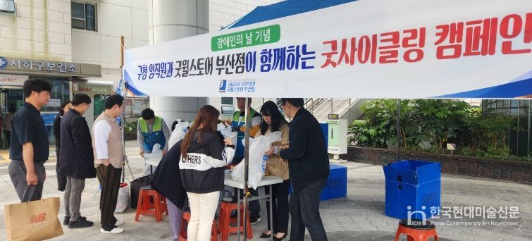 한국현대미술신문 정소영 기자 | 부산 사하구는 제46회 장애인의 날(4월 20일)을 맞아 지난 4월 23일 사하구청 본청 및 제2청사에서 중증장애인 직업재활시설 ‘굿윌코리아 보호작업장’(시설장 김성태)과 함께 '굿사이클링' 기부 물품 나눔 행사를 개최했다.