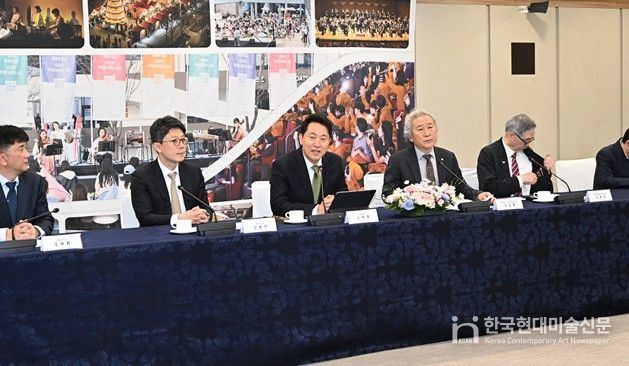 한국현대미술신문 배건 기자 | 오세훈 서울시장은 24일 오후 2시, 서울시청 간담회장에서 (사)한국예술문화단체총연합회 서울시연합회와 ‘문화 매력 도시 서울’ 조성을 위한 업무협약을 체결하고 문화예술계의 의견을 청취했다.