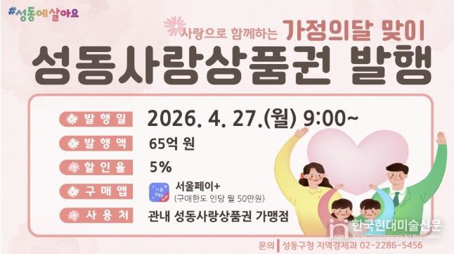 구 관계자는 “치솟는 물가로 모두가 어려운 시기이지만, 이번 성동사랑상품권 발행이 가계에는 든든한 보탬이 되고 소상공인들에게는 활력을 불어넣는 마중물이 되길 바란다”며, “가족의 따뜻함을 나누는 5월, 상품권 사용을 통해 지역 경제가 활짝 웃을 수 있기를 기대한다”고 말했다.