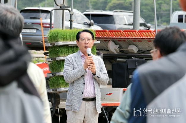 한국현대미술신문 신정은 기자 | 충북 괴산군은 연풍면 행촌리 소재 농가에서 올해 풍년을 기원하는 친환경 벼 첫 모내기를 실시했다고 27일 밝혔다.