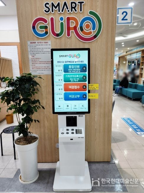 한국현대미술신문 배건 기자 | 구로구가 민원실 이용 편의를 높이기 위해 무장애 순번대기 무인안내기 설치를 완료했다.