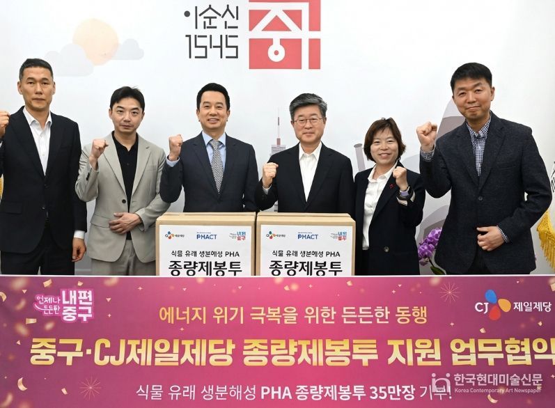 한국현대미술신문 배건 기자 | 서울 중구는 지난 24일 CJ제일제당과 ‘종량제봉투 무상 공급·지원 업무협약’을 체결하고, 생분해성 PHA 종량제봉투 35만 장을 기탁받기로 했다고 28일 밝혔다.