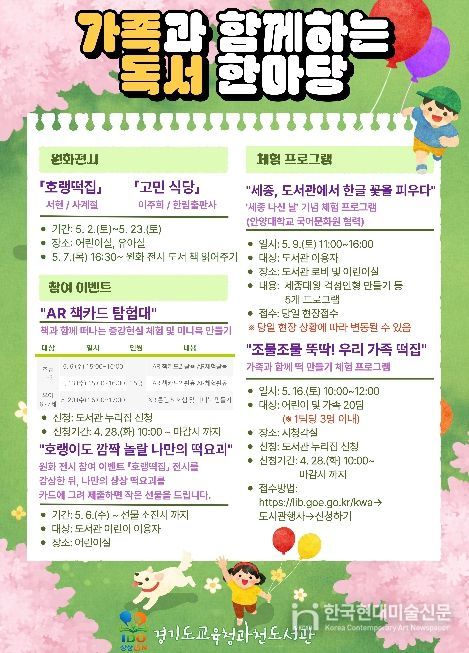 한국현대미술신문 배윤섭 기자 | 경기도교육청과천도서관이 5월 가정의 달을 맞아 ‘가족과 함께하는 독서 한마당’을 운영한다.
