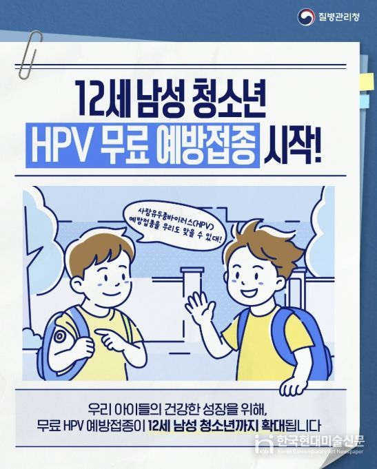 한국현대미술신문 신정은 기자 | 충북 보은군보건소는 5월 6일부터 12세 남학생(2014년생)을 대상으로 사람유두종바이러스(HPV) 무료 예방접종을 확대 시행한다고 밝혔다.