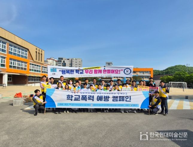 한국현대미술신문 신정은 기자 | 청주지방검찰청 영동지청과 청소년 범죄예방위원 영동지구위원회에서는 29일 이수초등학교 정문에서 전교생을 대상으로 학교폭력예방 및 근절을 위한 ‘학교폭력 예방 캠페인’을 실시했다.