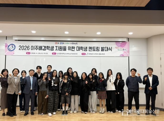 한국현대미술신문 신정은 기자 | 충남교육청은 29일, 순천향대학교(아산)에서 순천향대 지도자 학생 6명과 온양용화고·아산충무고 학생 20명, 담당 교사 등 30여 명이 참석한 가운데 ‘2026 이주배경학생 지원을 위한 대학생 지도 발대식’을 개최했다.