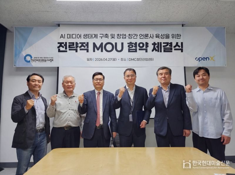 한국현대미술신문 김미정 기자 | 한국인터넷신문방송기자협회(회장 전병길, 이하 협회)와 오픈엑스(대표 김미진)는 지난 2026년 4월 27일 서울 상암동 DMC첨단산업센터에서 업무협약(MOU)을 체결하고, 제휴 언론사 육성과 건강한 미디어 생태계 강화를 위해 적극 협력하기로 뜻을 모았다.