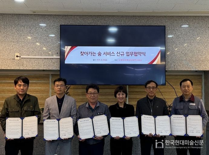 한국현대미술신문 정소영 기자 | 대구공공시설관리공단은 지난 4월 29일, 공단 대기환경사업처에서 대구 시민의 맑은 숨 권리 보장을 위해 칠곡공작한양아파트 외 3개 아파트와 ‘찾아가는 숨 서비스’ 업무협약을 체결했다.