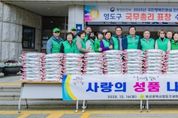 한국현대미술신문 정소영 기자 | 부산광역시 영도구 새마을회(회장 김철호)는 연말연시를 맞아 지역 내 소외되고 도움이 필요한 이웃들에게 따뜻한 격려와 온정을 전하고자, 지난 12월 16일 영도구청 광장에서 ‘따뜻한 겨울나기 사랑의 성품 나누기 행사’를 개최했다. 이번 행사는 경제적 어려움으로 힘든 시기를 보내고 있는 이웃들에게 희망과 용기를 전하고, 나눔과 배려를 실천하는 공동체 문화를 확산하기 위해 마련됐다. 특히 지역사회와 늘 함께하는 새마을지도자들의 역할을 되새기며, 이웃 돌봄과 나눔 실천의 가치를 공유하는 뜻깊은 자리로 의미를 더했다. 이날 행사에는 영도구청장을 비롯해 구지회장단, 각 동 부녀회장과 새마을지도자 등 40여 명이 참석했으며, 독거 어르신, 장애인 가정, 차상위계층 등 관내 취약계층 100세대에 장흥쌀(10kg)을 전달했다. 김철호 영도구 새마을회장은 “경기침체 등으로 모두가 어려운 시기일수록 주변의 소외된 이웃들에게 더 많은 관심과 따뜻한 손길이 필요하다”며 “오늘 전달한 장흥쌀이 이웃들의 겨울나기에 작은 힘이 되기를 바란다”고 말했다.