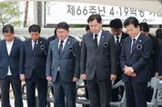 한국현대미술신문 기자 | “김주열 열사를 비롯한 수많은 선열의 희생이 오늘의 민주주의를 만들었음을 잊지 말아야 합니다.” 김관영 전북특별자치도지사는 19일 남원시 김주열 열사 추모공원에서 열린 제66주년 4·19혁명 기념식에 참석해 민주영령을 추모하고, 4·19 정신 계승 의지를 다졌다. 이날 행사는 정동영 통일부 장관과 박희승 국회의원, 최경식 남원시장, 이영노 남원 김주열 열사 기념사업회장, 도민 등 300여 명이 참석한 가운데 민주주의 발전의 의지를 다졌다. 기념식은 국민의례에 이어 김주열 열사 약력 소개, 기념사, 추도사, 남원시립국악단의 기념 공연, 4·19의 노래 제창, 묘역 참배 순으로 진행됐다. 특히 4·19혁명희생유족과 보훈단체 회원, 학생 등 다양한 세대가 한자리에 모여 민주주의의 소중함을 되새겼다. 김 지사는 추도사에서 “4·19혁명은 단순한 정권 교체를 넘어선 위대한 승리의 역사”라며 “평범한 시민의 힘으로 절대 권력을 무너뜨린 시민혁명의 전형이자 대한민국 민주주의의 초석을 다진 역사적 전환점”이라고 강조했다. 이어 “1960년 2월 28일 대구에서 피어오른 민주의 불꽃이 3