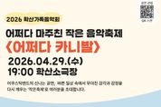 한국현대미술신문 박재남 기자 | 인천 미추홀구 학산 생활 문화센터 학산소극장에서 오는 4월 29일 저녁 7시 ‘2026년 학산 가족 음악회’의 첫 번째 공연을 개최한다. ‘학산 가족 음악회’는 공모를 통해 선정된 다양한 공연을 선보이며, 시민들이 일상에서 부담 없이 공연 문화를 즐길 수 있도록 마련된 프로그램이다. 특히 가까운 공간에서 편안하게 관람할 수 있어 가족 단위 관객을 비롯해 누구나 함께할 수 있는 것이 특징이다. 올해 첫 무대는 어쿠스틱 밴드 ‘신나는 섬’의 공연 ‘어쩌다 마주친 작은 음악 축제 '어쩌다 카니발'’로 꾸며진다. ‘신나는 섬’은 바이올린, 아코디언, 집시 기타, 우쿨렐레, 하모니카, 더블베이스, 퍼커션 등 다양한 어쿠스틱 악기를 기반으로 활동하며, 경쾌하면서도 따뜻한 사운드로 관객과 호흡해 온 팀이다. 특히 ‘망원동 로마니’, ‘아침부터 카니발이야’ 등 밴드 고유의 색깔이 담긴 곡들과 함께 ‘리멤버 미’, ‘에델바이스’ 등 대중에게 친숙한 곡들을 연주해, 마치 유럽의 어느 골목에서 우연히 마주친 거리 축제와 같은 이국적이고 동화적인 감동을 선사할 계획이다. &