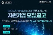 한국현대미술신문 박재남 기자 | 인천테크노파크(인천TP)는 지역 중소기업의 인공지능 전환(AX) 촉진과 산업 경쟁력 강화를 위해 ‘2026년 AI 플레이그라운드 인천 조성사업’의 참여기업을 오는 30일까지 모집한다고 밝혔다. 이번 사업은 AI와 AX 관련 기업 총 39개사를 선정해 지원할 예정이며, 선정된 기업에는 프로그램에 따라 기업당 최대 1억 원의 사업비가 지원된다. 세부 프로그램은 ▲AI 기술개발 ▲AI 사업화 ▲AX 컨설팅 ▲AX 전환지원(AI 내재화) 등 4개 트랙으로 구성된다. 모집 대상은 인천 관내 중소기업으로, AI 기술 보유 단계나 도입 희망 여부에 따라 적합한 프로그램을 선택해 신청할 수 있다. 지원 신청은 오는 4월 30일 오후 5시까지이며, 비즈오케이(Biz-OK) 또는 인천R&D관리시스템을 통해 온라인으로 접수하면 된다. 다만, 프로그램별로 접수 기간이 다를 수 있어 공고문을 반드시 확인해야 한다. 자세한 내용은 인천TP 홈페이지 지원사업 게시판을 확인하거나, AI혁신센터로 문의하면 된다. 인천TP 관계자는 “이번 사업은 인천의 중소기업들이 급변하는
