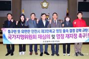 한국현대미술신문 박재남 기자 | 중구의회는 18일 본회의장에서 중구민의 뜻을 외면한 인천시의 제3연륙교 명칭 졸속 결정을 강력 규탄하며, ‘국가지명위원회 재심의 및 명칭 재지정’을 촉구하는 성명서를 발표했다. 인천시는 지난 12일, 중구와 서구의 재심의 요청을 반영한 ‘인천광역시 지명위원회’ 회의에서 제3연륙교의 명칭을 ‘청라하늘대교’로 재의결했다고 발표했다. 그러나 중구의회는 “이번 결정은 지역 간 형평성과 중구민의 의견을 충분히 반영하지 못하고 영종 지역의 상징성을 배제한 일방적인 결정”이라며 수용할 수 없다는 입장이다. 중구의회는 “제3연륙교는 유료도로로 인한 이동 제한 속에서도 불편과 불합리함을 감내하며, 영종지역 주민들이 건설 비용까지 부담한 소중한 결실”이라며 “생계유지 등 일상 활동을 위해 해당 교량을 가장 많이 이용하게 될 주 이용자가 영종지역 주민들이란 점을 고려할 때 명칭에 영종 주민들의 권리와 지역 정체성을 반영하는 것이 더 타당하고 자연스럽다”고 강조했다. 또한, “섬과 육지를 연결하는 연륙교의 명칭은 강화대교, 무의대교 등과 같이 섬의 이름을 따르는 것이 관례임에도 인천시는 ‘청라하늘대교