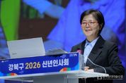 한국현대미술신문 배건 기자 | 서울 강북구는 지난 9일 강북문화예술회관 강북소나무홀에서 ‘2026 강북구 신년인사회’를 개최하고, 주민 및 지역 인사들과 새해 인사를 나눴다. 이날 행사에는 국회의원, 교육감, 당협위원장, 시·구의원, 주민 등 700여 명이 참석했으며, 강북구시니어합창단과 강북구여성합창단의 아름다운 화음이 어우러진 식전공연으로 행사의 문을 열었다. 이후 국민의례, 주민 새해소원 영상 상영, 신년 덕담, 구청장 신년사 순으로 행사가 진행됐다. 특히 행사 중 상영된 구민 새해소원 영상에는 강북구에서 꿈과 희망을 품고 살아가고 있는 이웃들의 새해를 맞는 기대와 바람이 생생하게 담겨, 참석자들의 공감을 이끌었다. 이어진 신년 덕담 시간에는 서로의 안녕과 희망을 전하며 새해를 맞이하는 따뜻한 분위기가 이어졌다. 이순희 강북구청장은 신년사를 통해 “그동안 다져온 행정의 기반을 바탕으로, 2026년에는 구민의 일상 속에서 변화를 만들어가는 한 해가 되도록 하겠다”며, 혁신과 성장, 상생과 복지, 자연과 웰니스, 문화와 경제를 중심으로 한 구정 운영 방향을 설명했다. 구는