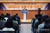 한국현대미술신문 배건 기자 | 서울 성북구가 2일 성북구청 다목적홀에서 전 공직자가 함께하는 2026년 성북구 직원 시무식을 개최하고, 구민이 일상에서 체감하는 변화를 만들어 가기 위한 한 해의 출발을 알렸다. 이날 시무식에는 성북구청장을 비롯해 국‧과장 및 전 부서 공직자들이 참석해, 지난 한 해를 돌아보고 2026년 구정 운영 방향을 공유했다. 이승로 성북구청장은 인사말에서 민선 8기 후반부를 마무리하는 중요한 시점임을 강조하며, 계획 중심의 행정을 넘어 실질적 성과로 이어지는 구정을 당부했다. 특히 “행정의 궁극적인 목표는 지표를 채우는 것이 아니라, 주민의 삶이 실제로 나아졌는지에 있다”며, 현장 중심 행정과 협력·소통의 조직 문화를 재차 강조했다. 이어 이 구청장은 재난 대응, 복지·돌봄, 생활편의 등 민생 전반에서 사각지대 없는 촘촘한 행정을 펼칠 것을 당부하며 “구민 한 분 한 분이 행정의 변화를 일상에서 느낄 수 있도록 책임을 다하자”고 말했다. 또한 부서 간 칸막이를 낮추고, 공직자 개개인의 전문성을 존중하는 조직 문화를 통해 더 복잡한 행정 과제를 해결해 나가자는 당부도 했다. 성