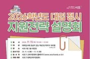 한국현대미술신문 배건 기자 | 서울 서초구가 수능 이틀 뒤인 11월 15일 오전 10시 서초구청 2층 대강당에서 수험생과 학부모를 위한 ‘2026학년도 대입 정시 지원전략 설명회’를 개최한다고 밝혔다. 수험생들의 필수 코스로 자리 잡은 서초구의 ‘대입 정시 지원전략 설명회’는 ‘교육1번지’ 서초가 매년 수능 직후 가장 빠르게 여는 입시 설명회다. 올해는 국내 최고 수준의 입시 전문가 2명이 120분간 핵심 전략을 압축해 전달하는 ‘올인원(All-in-One)’ 특강으로 진행될 예정으로 수능 직후 빠르게 정시 정보를 얻을 수 있는 자리인 만큼 수험생과 학부모들의 높은 관심이 예상된다. 설명회 1부에서는 임성호 종로학원 대표이사가 ▲2026 정시 합격선 예측 ▲의대정원 축소로 인한 ‘사탐런’(이과생의 사회탐구 응시) 변수 ▲무전공 선발 확대의 파급효과 등 분석으로 수험생들이 급변한 정시 환경 속에서 자신의 위치를 파악하고 전략적으로 지원할 수 있도록 돕는 시간이 마련된다. 이어서 2부에서는 장문성 종로학력개발원장이 ▲대입 일정 체크리스트 ▲대입 경쟁률 예측 ▲수도권 주요 대학 정시 모집요강 등 분석을 통해 수험생과 학부모가 반