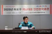 한국현대미술신문 배건 기자 | 마포구는 10월 21일 오후 2시, 재난안전상황실과 서울월드컵경기장 서문 일대에서 ‘2025년 재난대응 안전한국훈련’을 실시했다. 이번 훈련은 재난안전대책본부의 역할과 기능을 점검하고, 기관 간 공조체계를 강화해 재난 발생 시 신속하고 효과적으로 대응하기 위해 마련됐다. 본 훈련에 앞서 같은 날 오전 11시에는 대한적십자사봉사회 마포구협의회 주최로 ‘안전한국 훈련-구호급식 모의훈련’이 진행됐다. 재난, 화재, 수해 등으로 일상적인 식사 제공이 불가능한 상황을 대비해, 적십자사 회원 30여 명과 마포구, 마포소방서, 마포경찰서 등 유관기관 관계자들이 표준 구호식단(쌀밥, 참치김치찌개, 소불고기, 두부조림 등)을 배식하며 현장 대응 능력을 점검했다. 박강수 마포구청장은 현장을 찾아 직접 배식에 참여하고 봉사자들을 격려했다. 이후, 박 구청장은 지진으로 인한 건물 붕괴, 화재, 가스 폭발, 싱크홀 발생 등 복합재난 상황을 가정한 본 훈련에 참여했다. 오후 2시, 서울월드컵경기장 인근에서 규모 5.8의 지진이 발생했다는 가상 상황이 선포되자, 재난안전