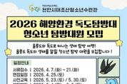 한국현대미술신문 신정은 기자 | 천안시청소년재단 산하 천안시태조산청소년수련관은 지역 청소년을 대상으로 ‘2026 해양환경 독도탐방대’ 참가자를 모집한다고 7일 밝혔다. 이번 프로그램은 청소년들이 울릉도와 독도의 자연환경을 직접 체험하며 해양 생태계에 대한 이해를 높이고 영토의 소중함을 인식할 수 있도록 기획됐다. 모집 대상은 천안시에 거주하거나 관내 학교에 재학 중인 2008~2013년생 청소년 12명이다. 신청 기간은 7일부터 오는 21일까지이며, 참가를 희망하는 청소년은 네이버 폼을 통해 접수하면 된다. 탐방대는 서류 접수와 면접, 사전교육을 거쳐 선발되며, 울릉도·독도 현장 탐방은 오는 6월 4일부터 6일까지 2박 3일간 실시된다. 자세한 사항은 천안시태조산청소년수련관(041-566-0179)으로 문의하면 된다. 김응일 천안시청소년재단 대표이사 직무대행은 “청소년들이 우리 영토에 대한 이해를 높이고 올바른 가치관을 형성하는 계기가 되길 바란다”고 말했다.