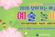 한국현대미술신문 신정은 기자 | 천안문화재단은 오는 12일 천안상록리조트 놀이공원 일원에서 ‘예술놀이터’를 운영한다고 7일 밝혔다. 재단은 시민들이 일상 가까이에서 문화예술을 접할 수 있도록 다양한 생활권 공간을 찾아가 공연과 체험 프로그램을 제공하는 ‘찾아가는 예술무대’를 추진하고 있다. 예술놀이터는 찾아가는 예술무대 사업 중 하나로, 어린이와 가족 단위 방문객에게 전통예술과 퍼포먼스, 참여형 프로그램을 제공한다. 천안시립흥타령풍물단의 전통 풍물 공연을 시작으로, 마술사 최준형의 버스킹 마술쇼, 어린이 인기 크리에이터 ‘슈뻘맨’의 참여형 무대가 이어질 예정이다. 행사는 별도의 사전예약 없이 자유롭게 참여하면 된다. 안동순 대표이사는 “어린이와 가족이 함께 참여할 수 있도록 프로그램을 마련했다”며 “앞으로도 시민이 일상에서 문화예술을 접할 수 있는 기회를 확대해 나갈 것”이라고 말했다.