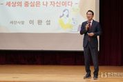 한국현대미술신문 신정은 기자 | 이완섭 서산시장이 20일 해미중학교 학생 180여 명을 대상으로 진로 특강을 진행했다. 이번 특강은 ‘세상의 중심은 나 자신이다’를 주제로 학생들에게 올바른 가치관 형성과 진로 선택에 도움이 될 조언을 전하고자 마련됐다. 이 시장은 “작은 눈덩이가 굴러가 큰 눈사람이 되듯, 작은 꿈이라도 품고 키워가는 과정이 무엇보다 중요하다”라며 “학생들에게 자기 자신을 믿고 가능성에 한계를 두지 말아야 한다”라고 말했다. 또한, 청소년이 빠지기 쉬운 ‘습관의 덫’에서 벗어나기 위해 일상 속 작은 변화를 만드는 행동의 실천이 필요하다고 강조했다. 이어, 긍정적인 사고와 적극적인 행동과 함께 어떤 어려움에서도 포기하지 않고 끝까지 도전하는 자세를 당부했다. 특히, 사회에서 중요하게 여겨질 자세로 ‘5S5품’을 소개했다. 5S는 친절(Smile), 간편(Simple), 유연(soft), 신속(Speed), 깔끔(Smart)을, 5품은 두품(창의), 입품(칭찬), 심품(감성), 손품(소통), 발품(현장)을 뜻한다. 특강이 마무리된 후에는 학생들과 자